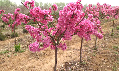(4) 病蟲害防治 在生長季節(jié),垂絲海棠苗易發(fā)生葉螨和蚜蟲的危害,如若發(fā)現(xiàn),立即噴施15%的螨死凈0.05%溶液防治葉螨,噴施10%的吡蟲啉0.02%溶液防治蚜蟲。如果發(fā)生白粉病可用20%的粉銹寧0.05%的溶液進行防治。